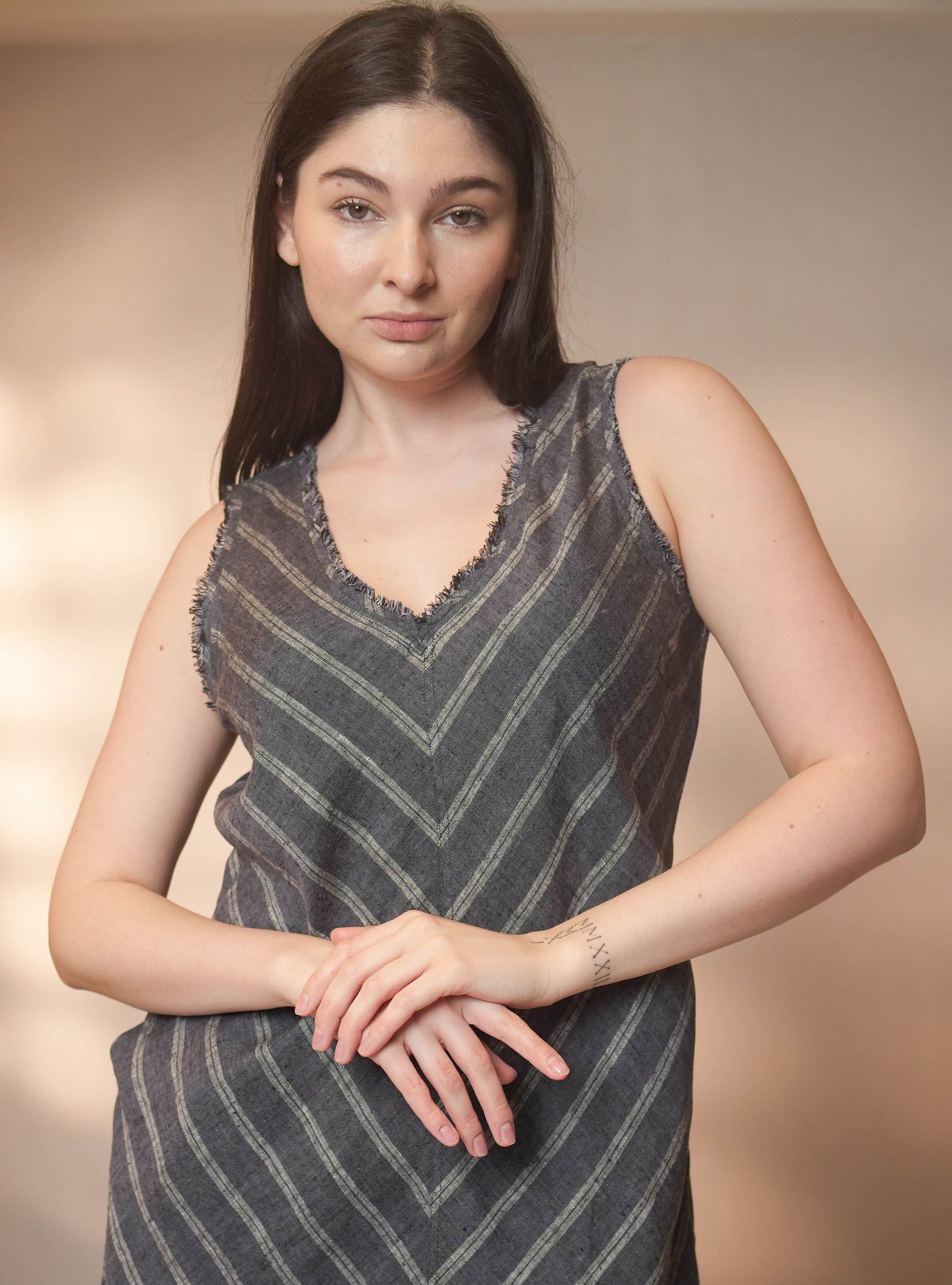 Pure Natural Linen Cavalry Stripe Dress combines elegance with comfort. Made from 100% natural linen, it features timeless cavalry stripes for a chic, versatile look. Perfect for casual outings or elevated everyday wear.