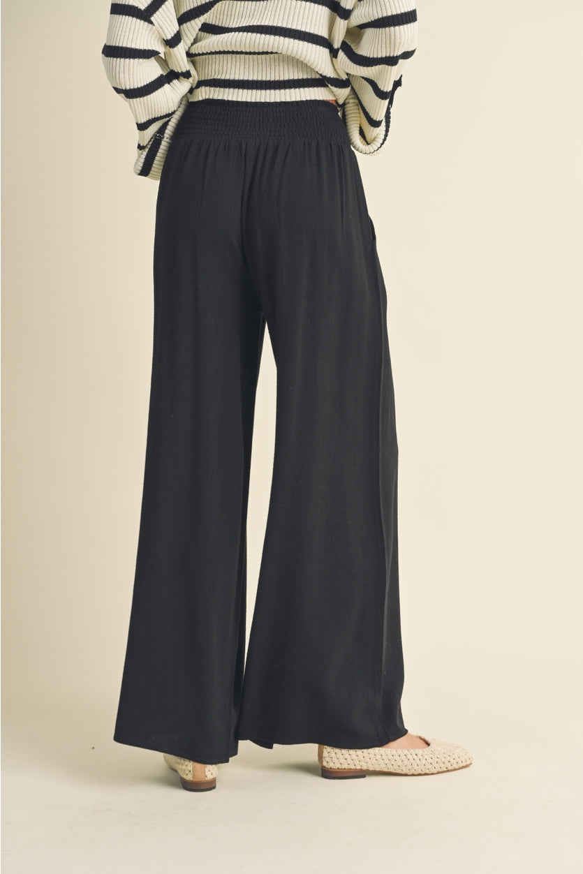 Cotton Linen Smocked Waist Pants with Tassel