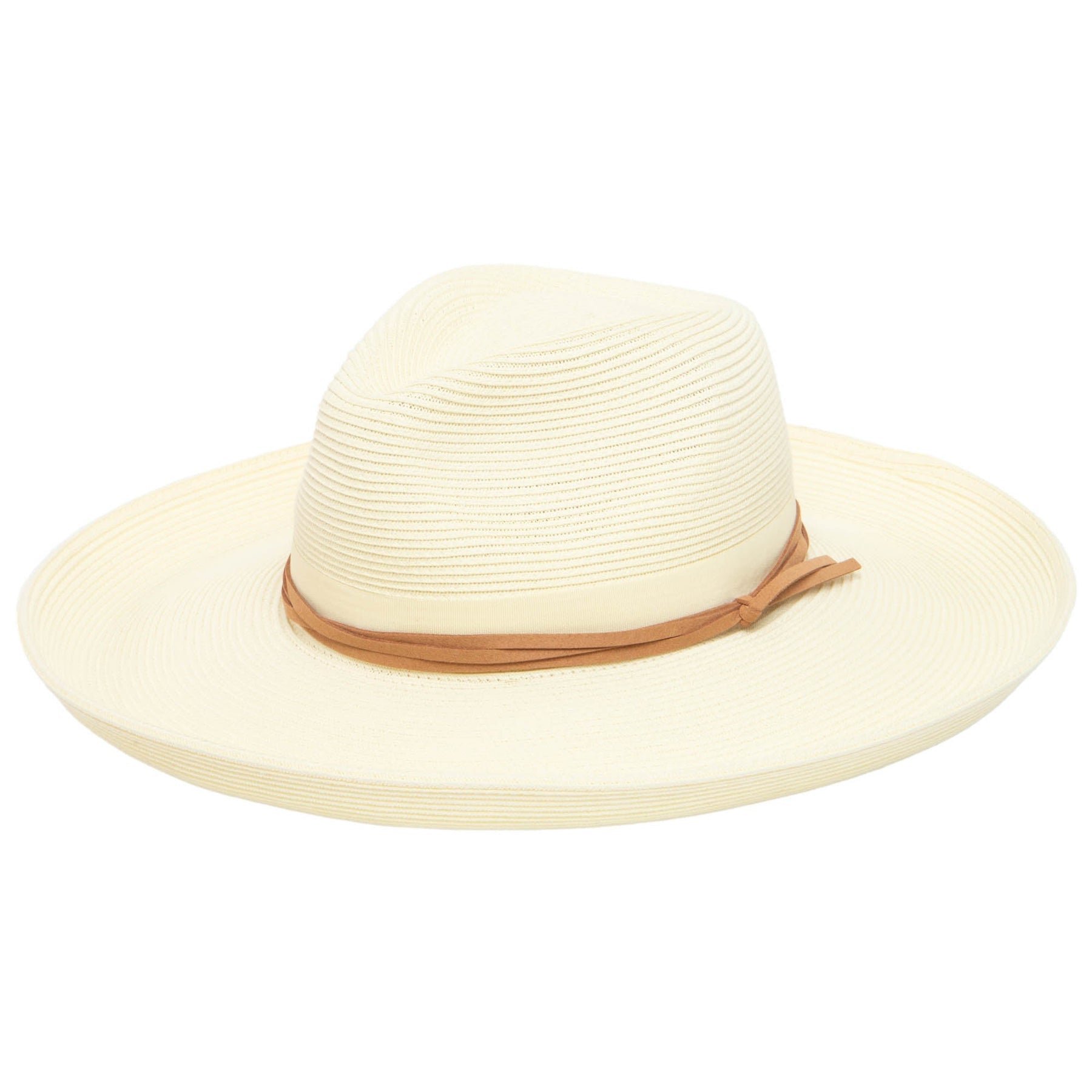 Make a fashion statement with the Camila Ultrabraid Kettle Brim Fedora. This stylish hat features a tonal grosgrain band and layered wrapped faux suede cording, adding a touch of elegance. With a 4" brim and UPF 50+ sun protection, it's both functional and chic. Plus, the adjustable size ensures a perfect fit.