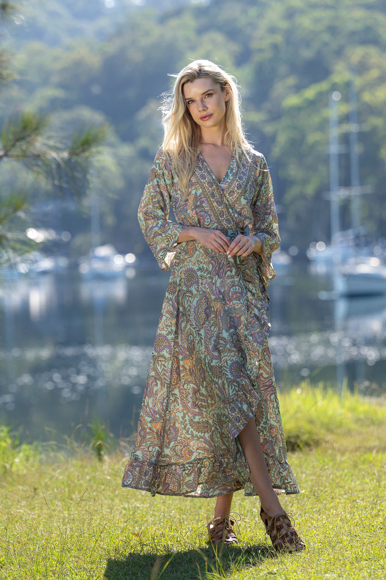 Cienna Long Sleeve Maxi Wrap Dress - Yasmin